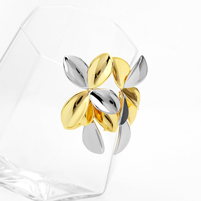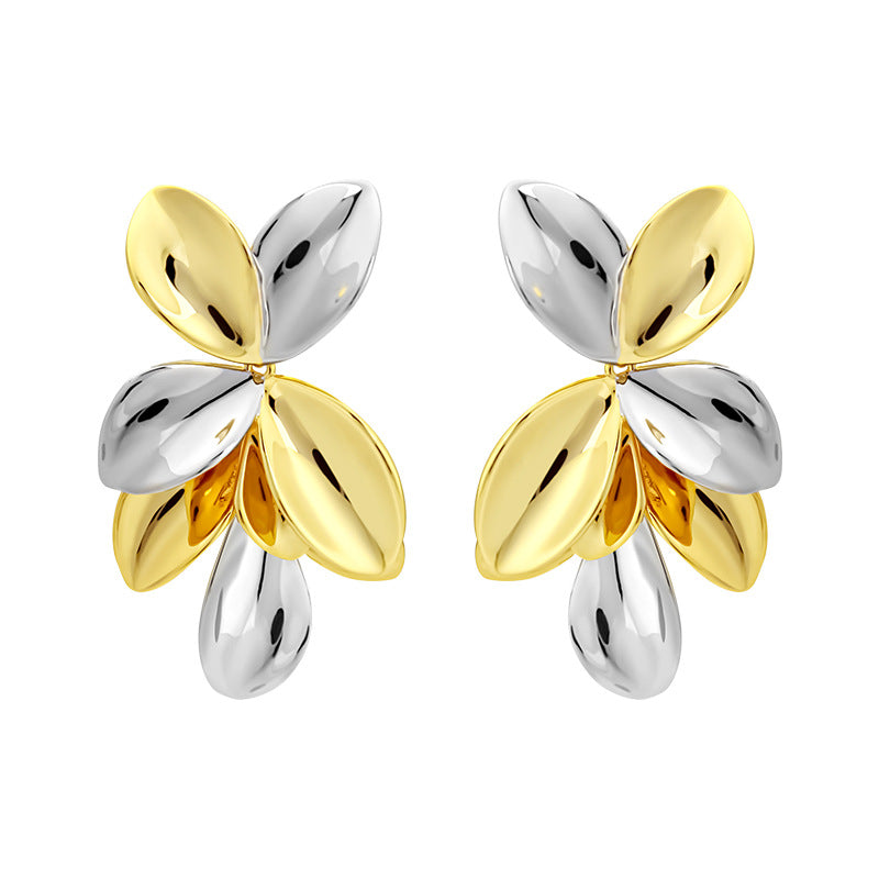 Bladformade statementörhängen i koppar med glänsande guld- och silverton. Den skulpturala designen ger ett levande och elegant uttryck som fångar blicken direkt. Kombinera gärna med ringen i samma serie för en sammanhängande och stilfull look.