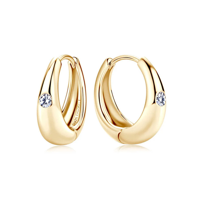 Dessa minimalistiska hoops med en diskret moissanitesten i centrum kombinerar enkelhet med en känsla av lyx. De är perfekta för både vardag och fest och lyfter din stil med diskret elegans. Idealiska för den som värderar tidlös design och enkel skönhet.