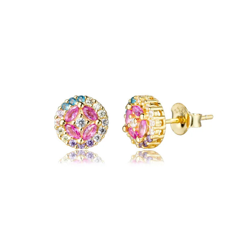 Färgglada och glamorösa studs som ger en extra färgklick. Varje örhänge är designat för att glittra och fånga ljuset från olika vinklar, vilket skapar en vacker och glänsande effekt. De lekfulla färgerna gör dessa örhängen till en iögonfallande accessoar som lyfter din stil.